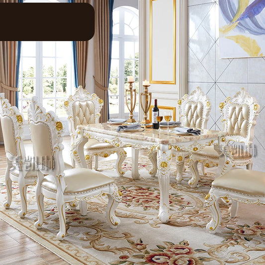 Dining Table Pink Dragon Jade Marble Long Dining Table Leather Dining Chair European-style White Gold-painted Solid Wood