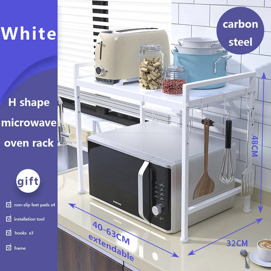 2-Tier retractable kitchen microwave stand countertop microwave oven rack shelf and 3 hooks
