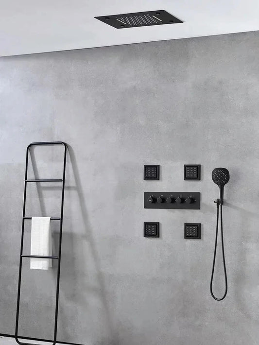 Brass Stainless Steel Square Multi Modern Contemporary Hotel Thermostatic Shower Set Bathroom Shower Room More Than 5 Years 5045