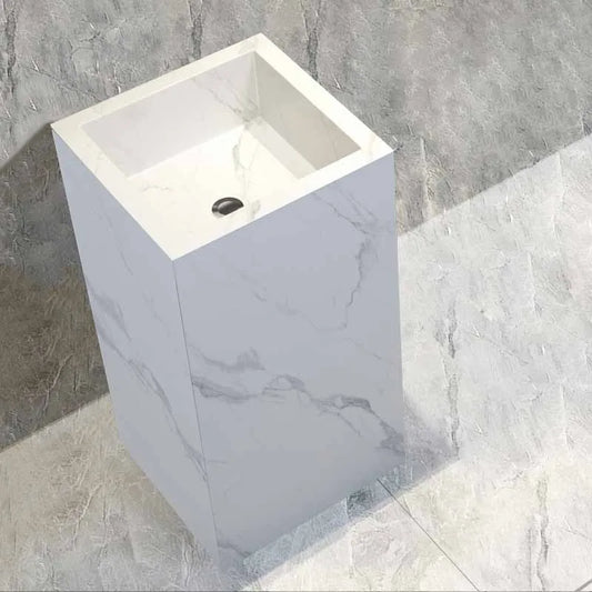Hotel 2022 Hot Selling white Marble bathroom wash basin artificial solid surface Floor Pedestal slab basin sink with locker