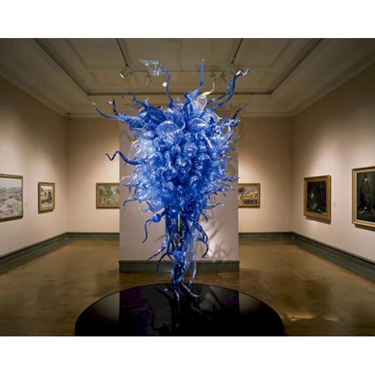 Luxury Blue Hand Blown Glass Chandelier Lighting with LED Light for Hotel Decor