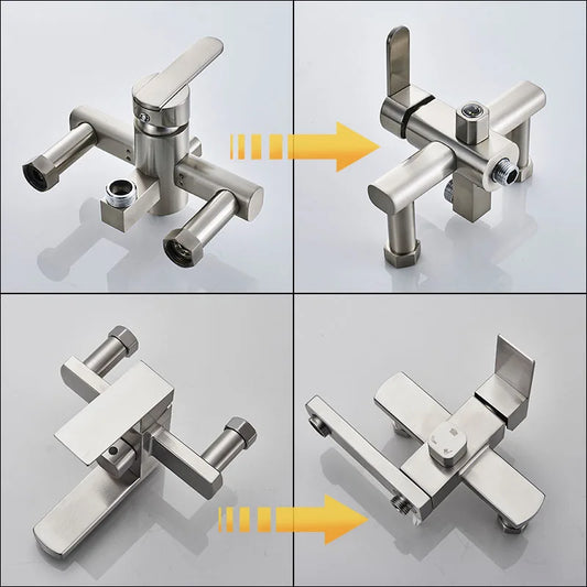 Luxury Shower Mixers Faucet Brushed Nickel Rain Shower Faucets System In-wall Square Hand Shower Mixer Tap Set