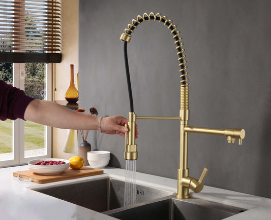 Brushed Gold Brass Taps Sink Pull Down Kitchen Faucet