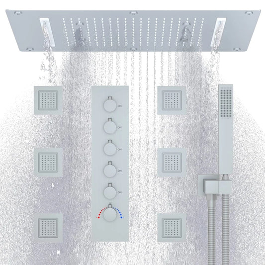 luxury indoor bathroom new model Thermostatic built-in ceilling mount Rainfall Shower Head and Handheld System Shower Set