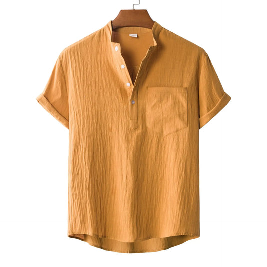Men's Casual Button Linen And Cotton Shirt Blouse Tee Shirt Hip Hop Top Pure Color Linen Top Short Sleeve Top Summer T-Shirts