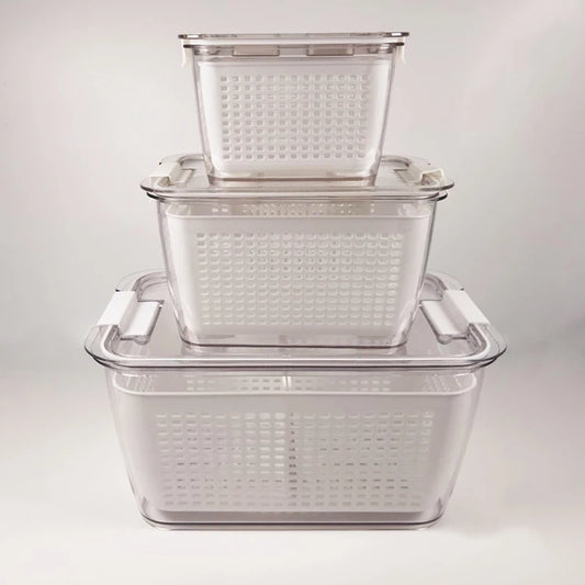 3 Pieces Set Plastic Fridge Refrigerator Organizer Bins Fruit Vegetable Food Storage Boxes Containers with Drain Basket