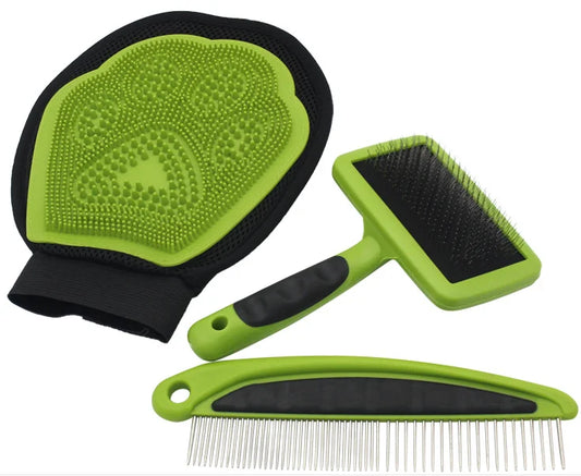 Pet Brush Hair Remover Set Cleaning Slicker Removes Self Grooming Dog 3 In 1 Pet Kit