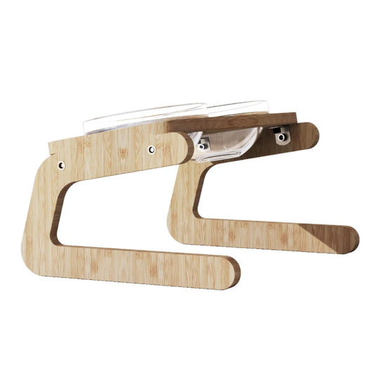 Raised Pet Bowls for Cats and Dogs, Bamboo Elevated Dog Cat Food Bowls Stand Feeder with 2 Glass Bowls, Waterproof