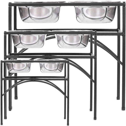 Raised Pet Bowl Stainless Steel Double Bowls Stand Non-Slip No Spill Dog Smart Height Adjusts Cervical Protectionto Large Dogs