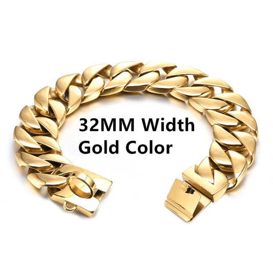 High Quality Wholesale New Pet Products 32mm Cuban Link Big Dog Gold Chain Tag Collar