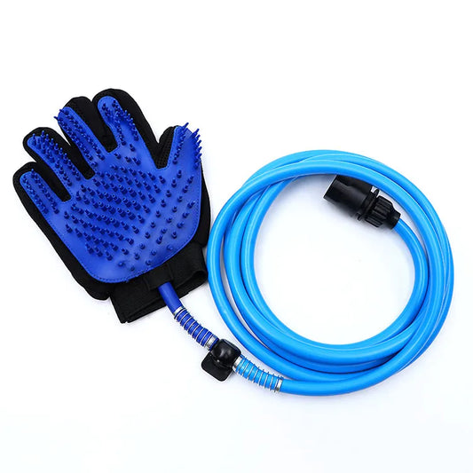 2-In-1 Dog Cat Massage Shower Sprayer Hair Remover Brush Glove Pet Grooming Gloves