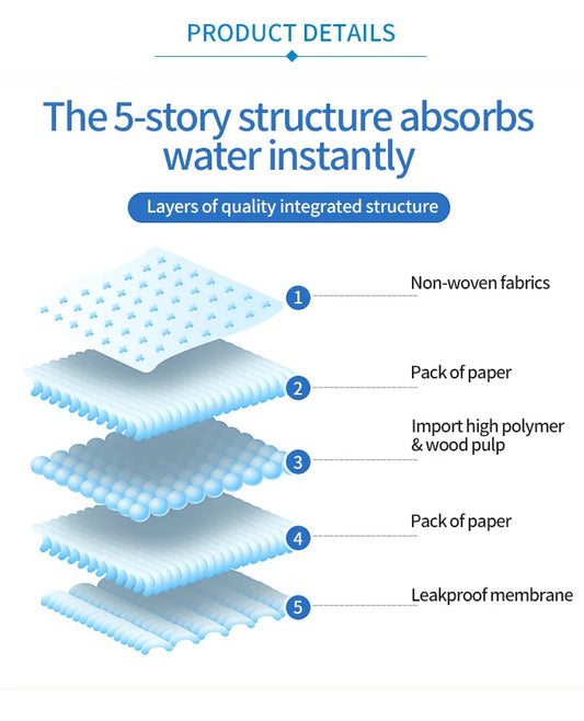 Dog and Puppy Pads Leak-proof 5-Layer Pee Pads with Quick-dry Surface for Pet Training