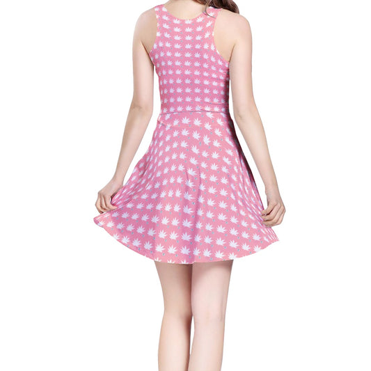 FROSTED BRIGHT TRUE PINK ICED DIAMOND Women's Sleeveless Midi Casual Flared Skater Dress