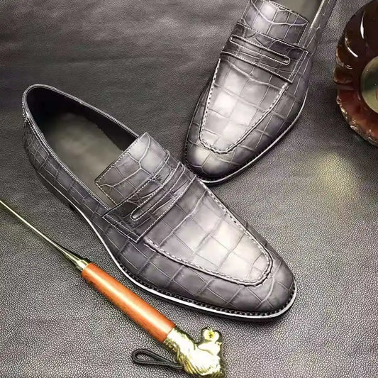 Trendy Designer Loafers Men Handmade Crocodile Skin Formal Shoes Leather Luxury Handmade Men's Dress Shoes