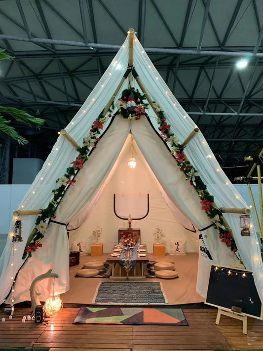 Tourle creative design A frame roof water proof luxury hotel glamping tepee safari tent