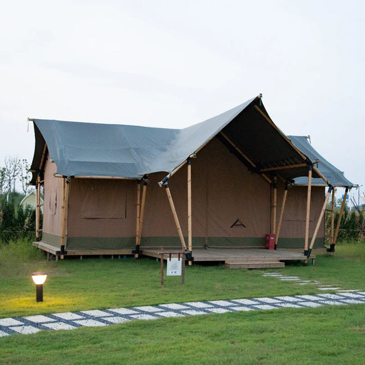 Waterproof Luxury Safari Tent Wooden Outdoor Camping Hotel Resort Tent Canvas Glamping House Tent