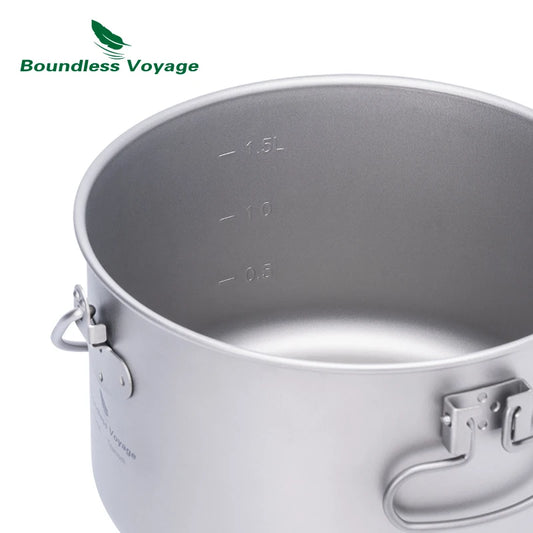 Boundless Voyage Titanium Camping Pot Big Capacity & Leightweight Outdoor Hanging Pot 2900ml 1950ml 1300ml Cooking Pot for Men