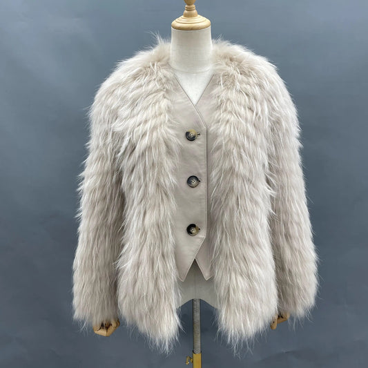 Fashion Women Ladies Real Raccoon Fur Jacket Comfortable Warm Cool Style V-necked Short Raccoon Fur Jacket Coat