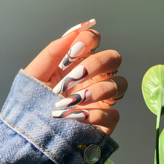 New Year's hot fakenails for 2022 24pcs/Set long coffin line Nail Tips For Women