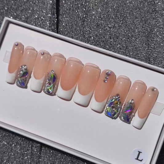 2022 Luxury Bling Pink High Quality Bulk False 3d Acrylic Design Wholesale Custom Press On Nails With Rhinestones And Box