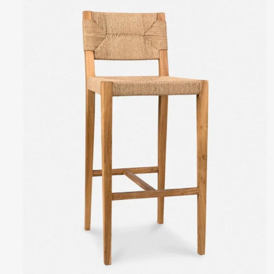 Nordic solid wood vintage rope woven bar chair American simple woven high chair Home home cafe rattan woven chair