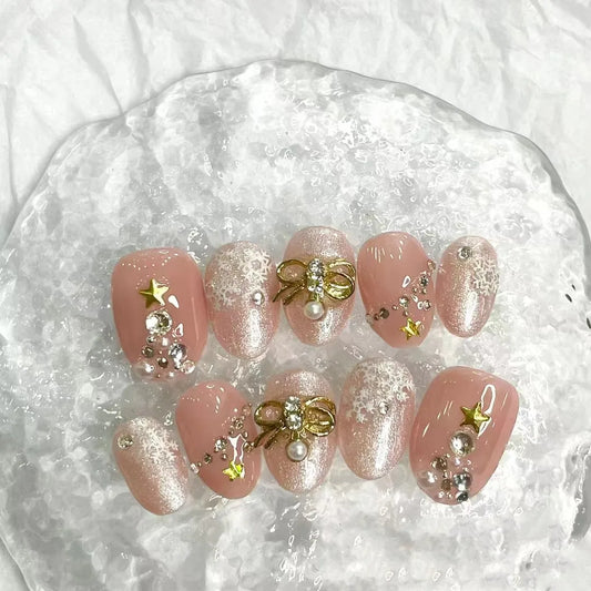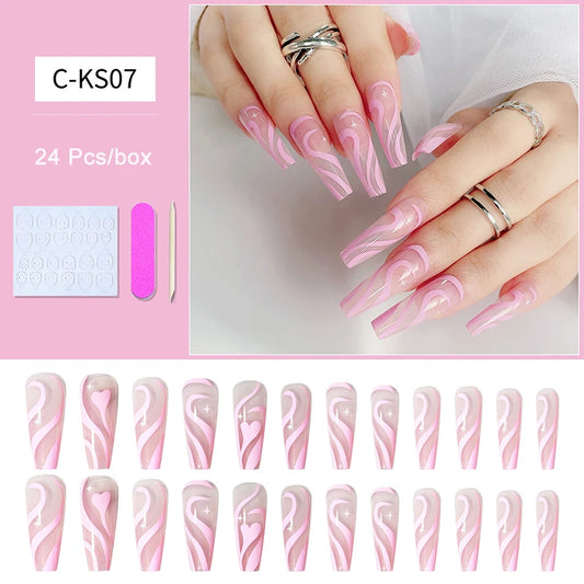 24 Pieces Of Reusable Fake Nails Acrylic Nails Luxury Full Coverage Acrylic Kawaii Pink Beauty Press On Nails For Women