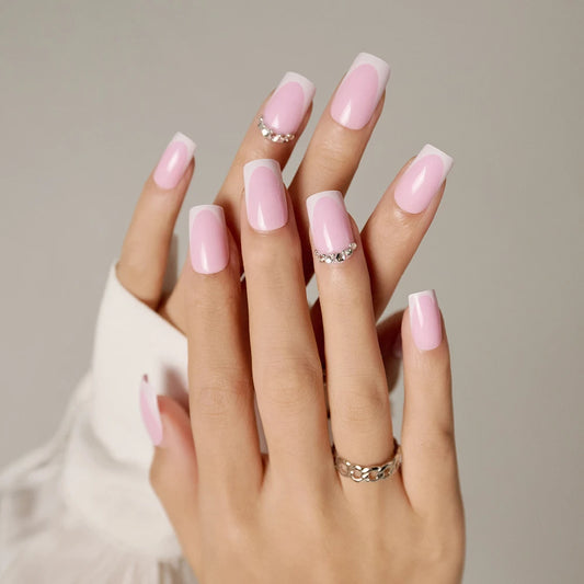 24pcs 2022 New variety of styles global hot selling square French white press on nails rhinestones