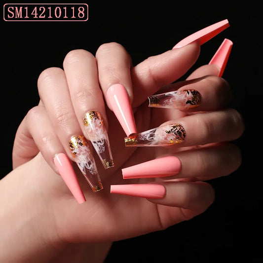 2022 Luxury Designs Long Coffin False Nails Manufactured Press On Nails Artificial Fingernails For Women