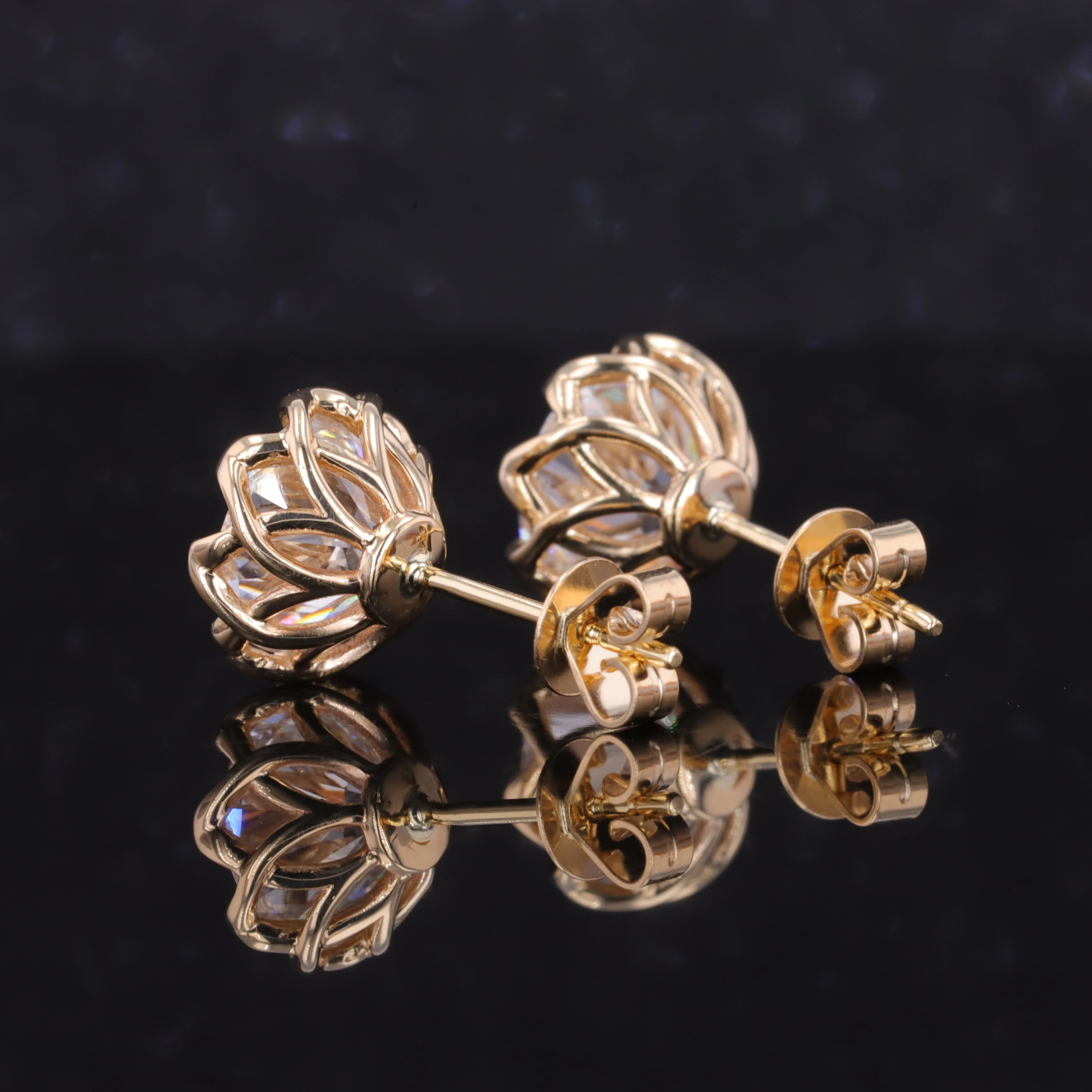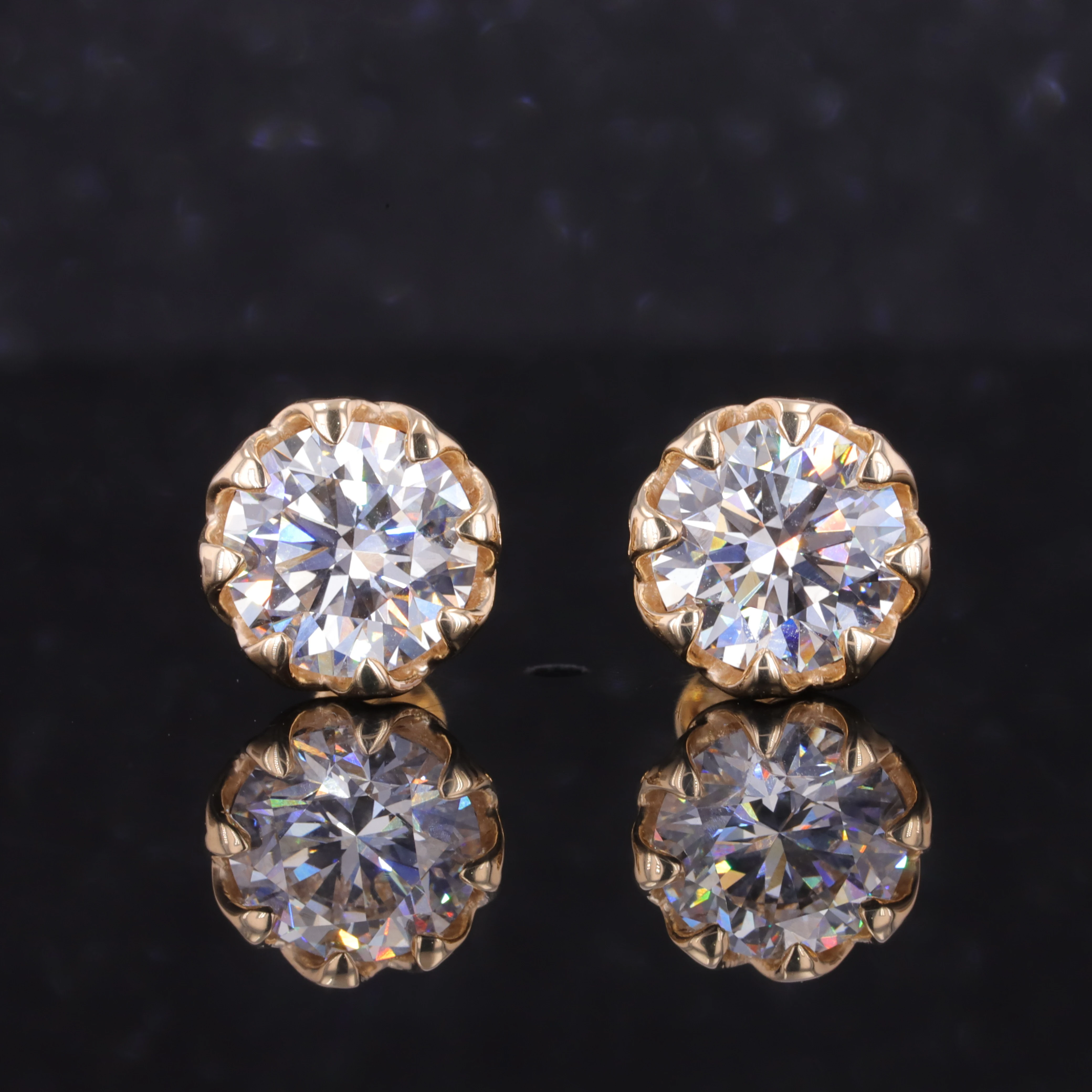 14K yellow gold 2ct D Color VVS1 Round Lab Created Diamond Earrings Men Stud Earrings for Women
