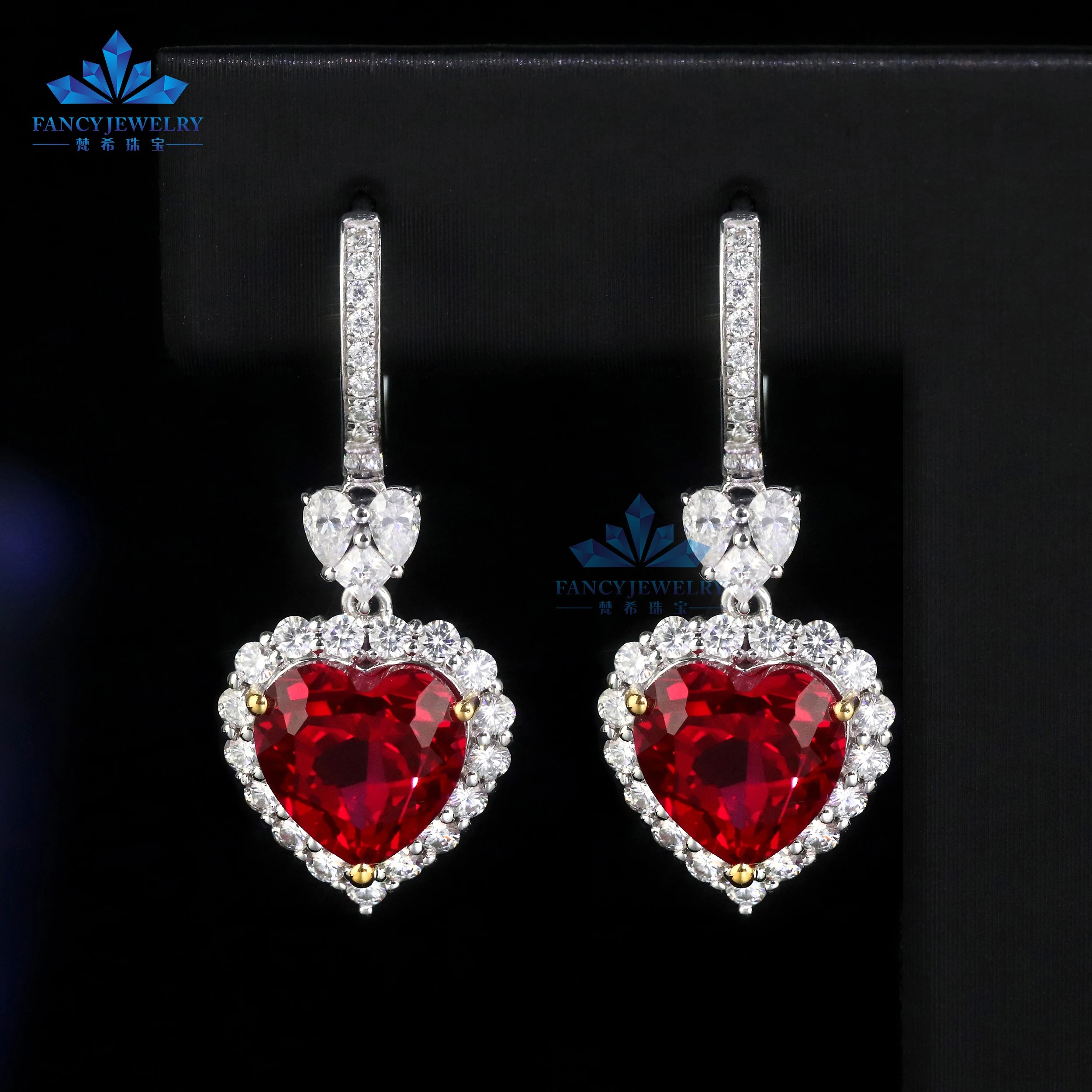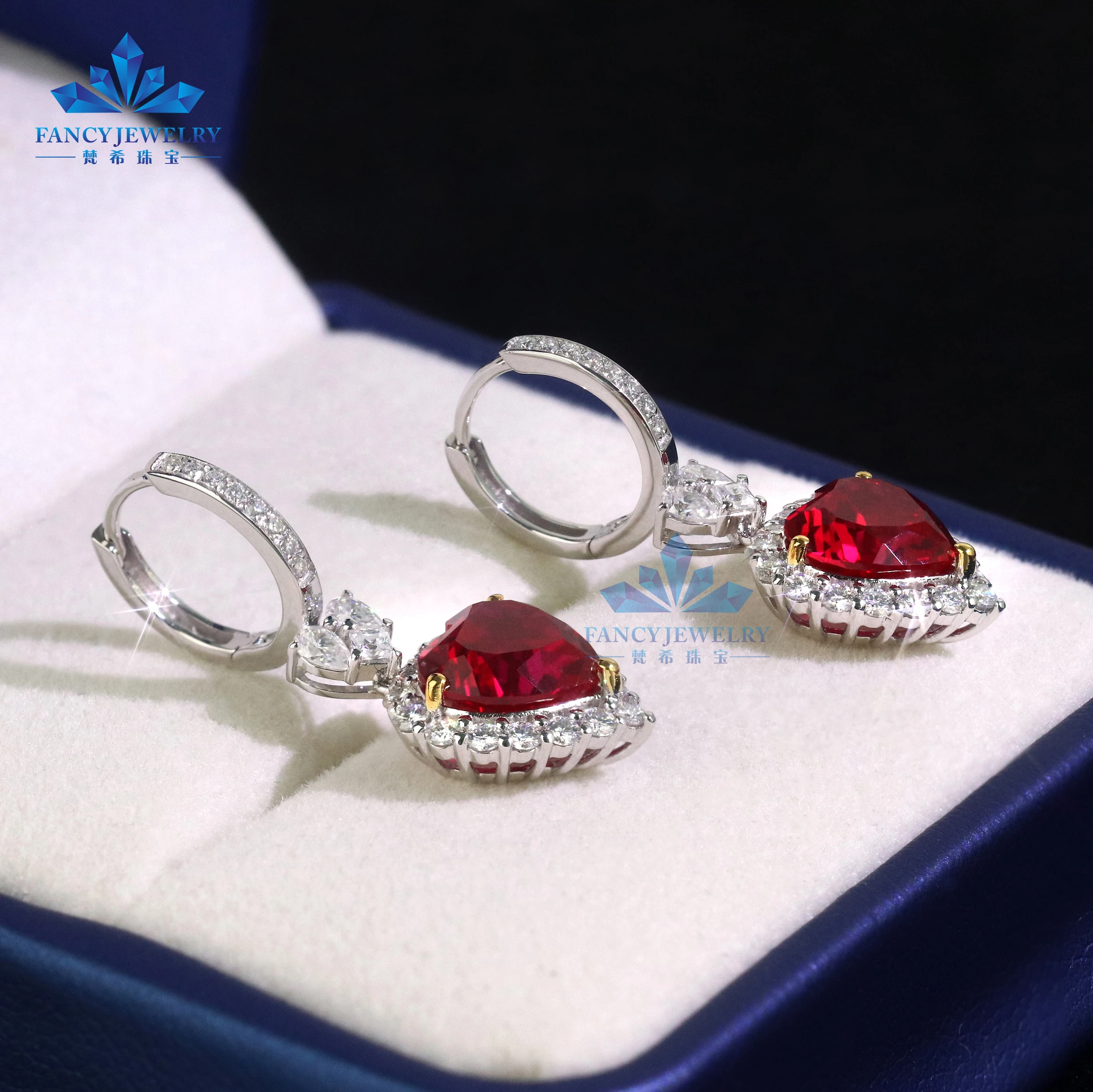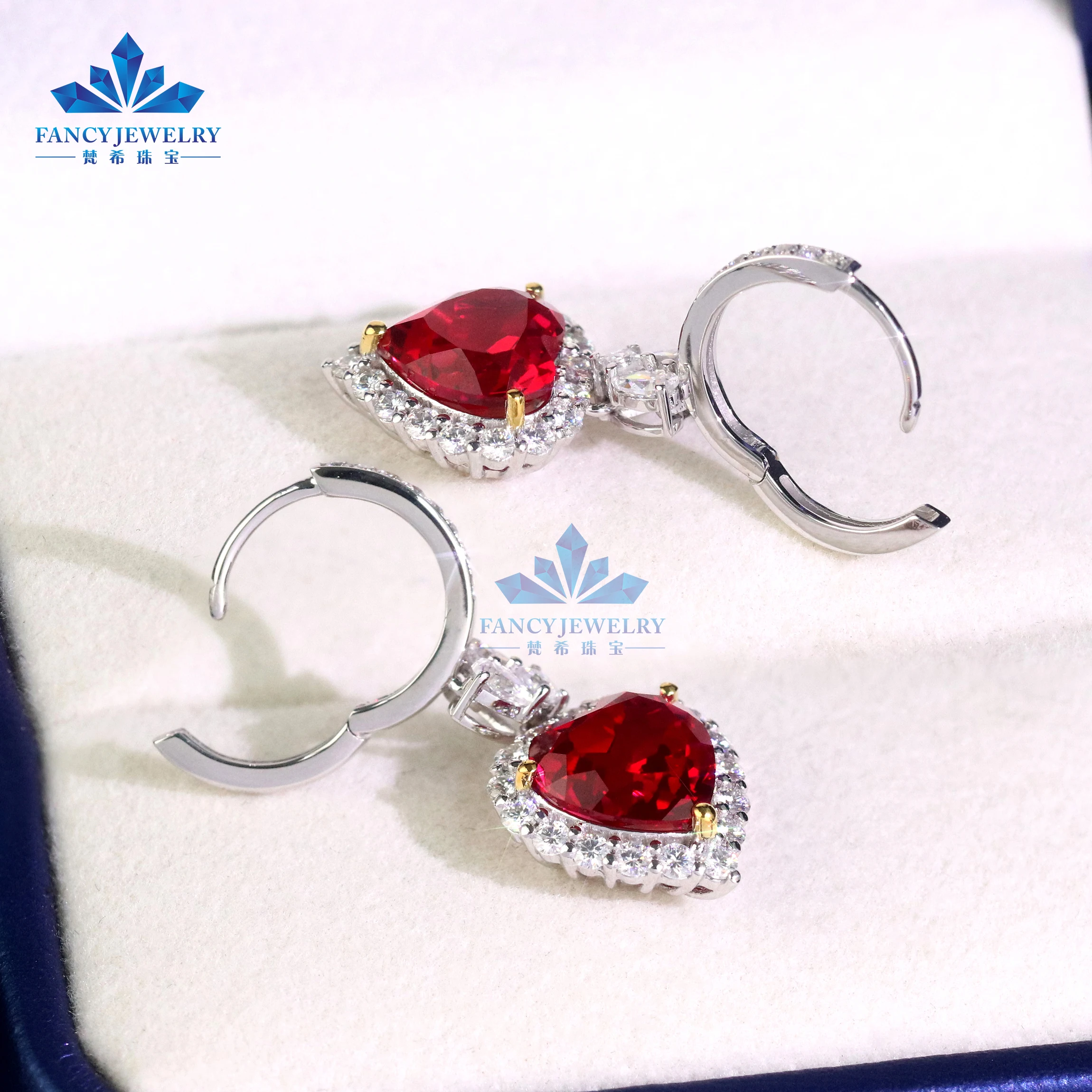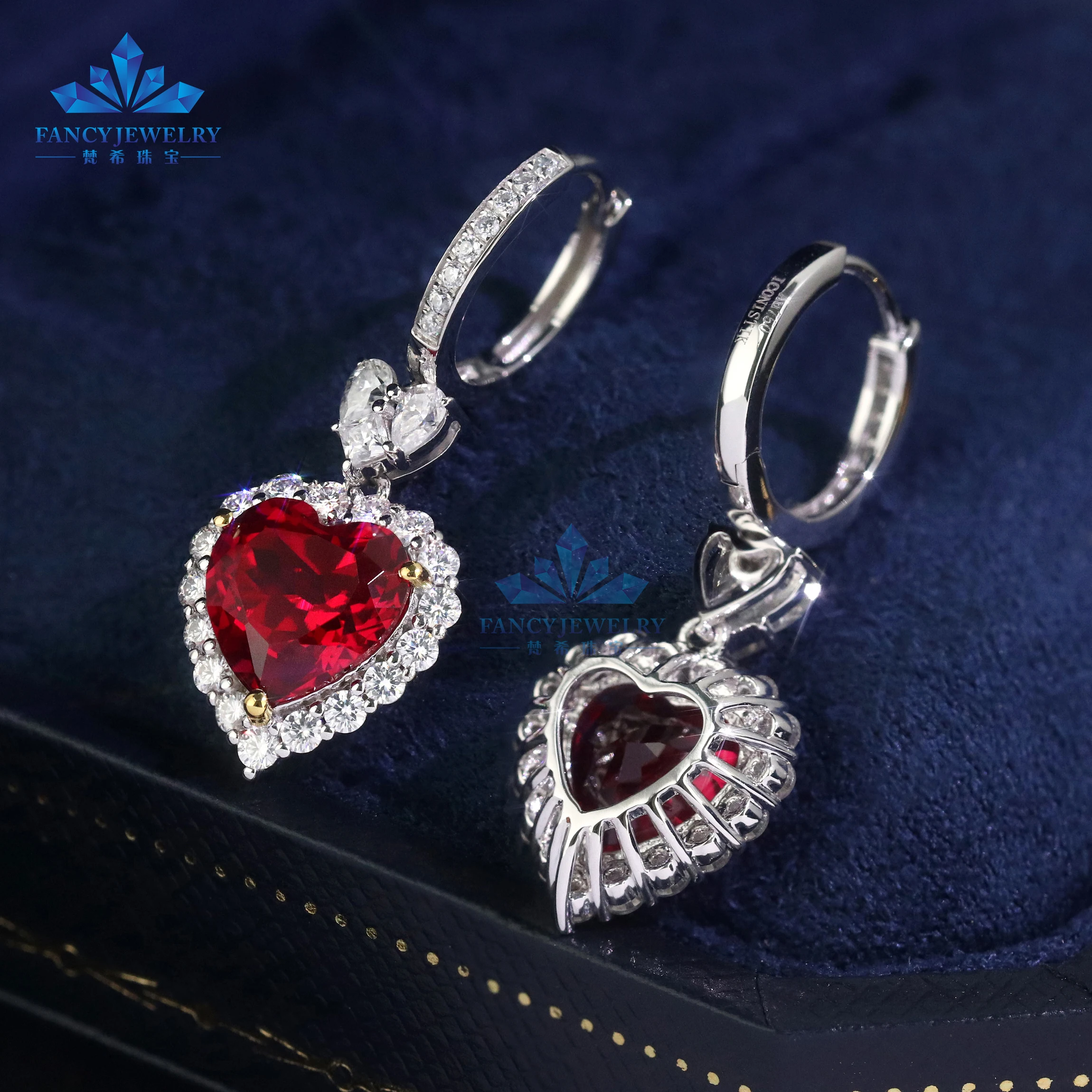 18K White Gold Heart Shape Earrings with 8x8mm Lab Grown Ruby Hoop Hook Shape Jewelry for Weddings and Parties