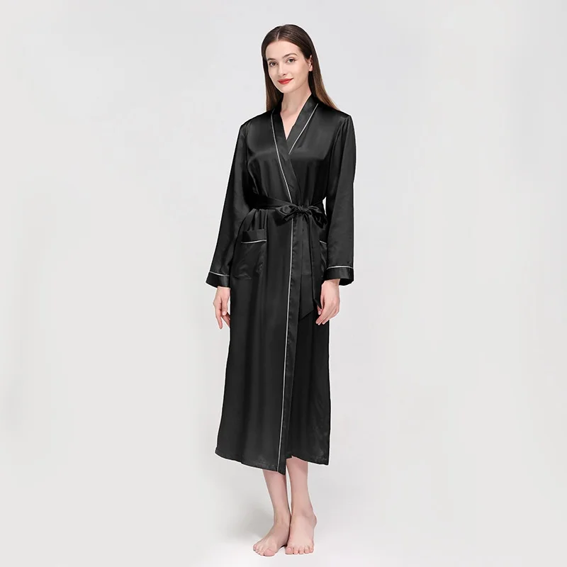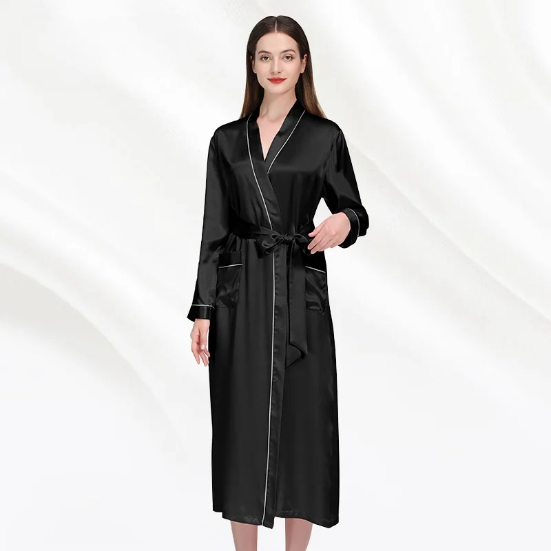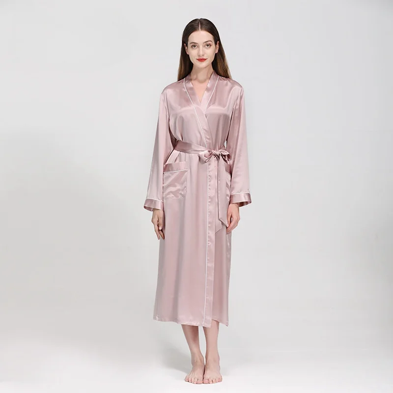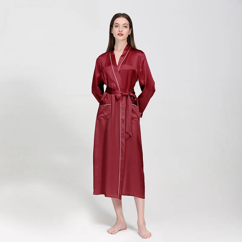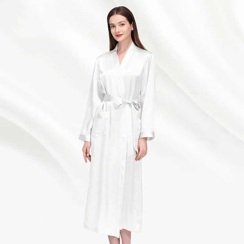 19Momme 100% Mulberry Silk Bridal Robe Soft Night Gown Belt Long Sleeve Luxury Dressing Gown Wedding Bathrobes Pure Silk Robe