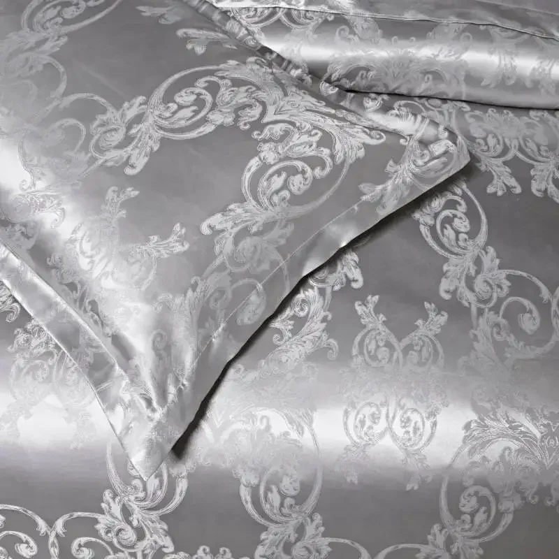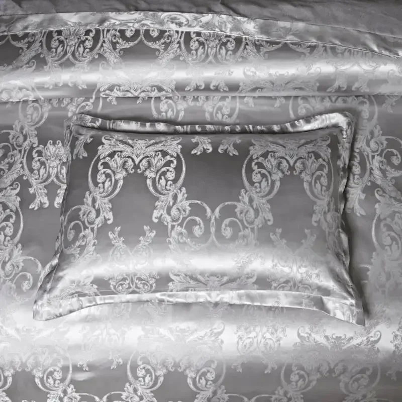 2/3PCS Luxury Jacquard Bedding Set King Size Duvet Cover Flower Golden Grey High Quality with 2 Pillowcase(single 1 Pillowcase)