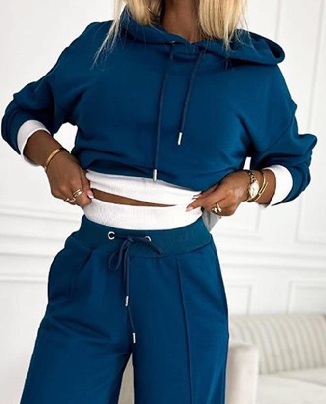 2 piece sets women outfit 2025 new in matching sets Fake Two Piece Hoodie pullover & Wide Leg Pant Set Casual Sports Pants Set