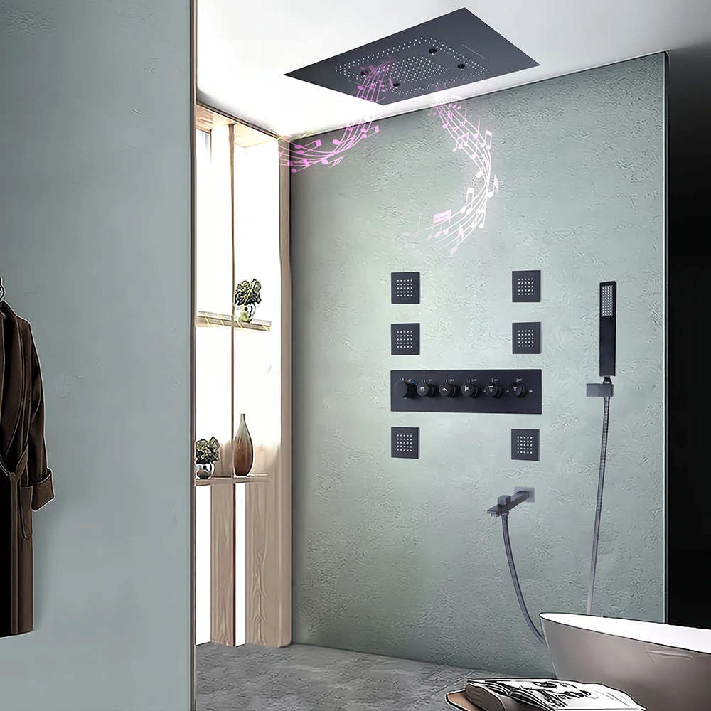 Newest Music function thermostat rain shower set Luxurious Matte Black bathroom spa shower system