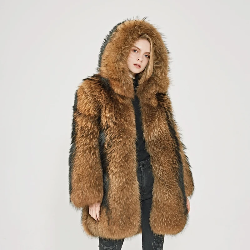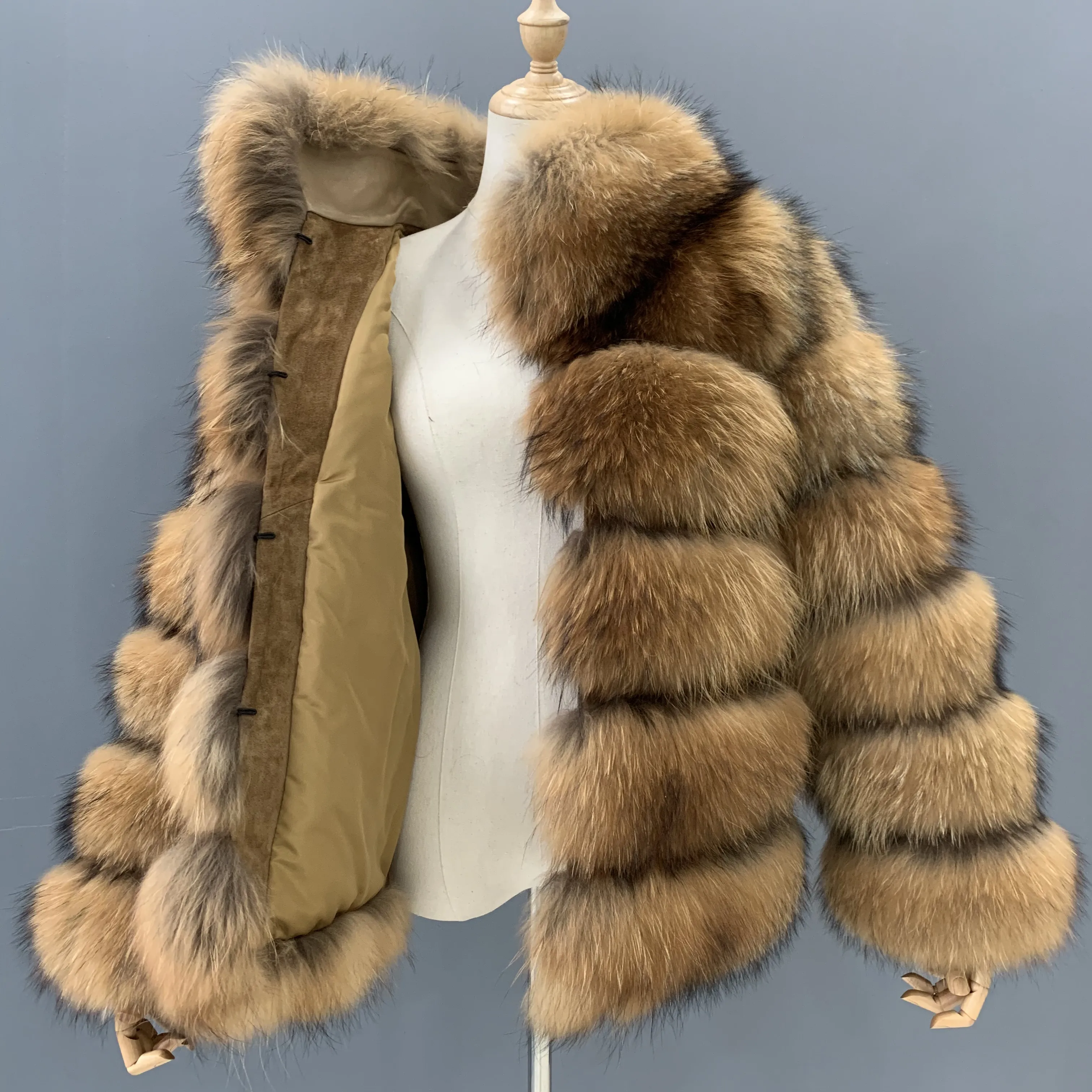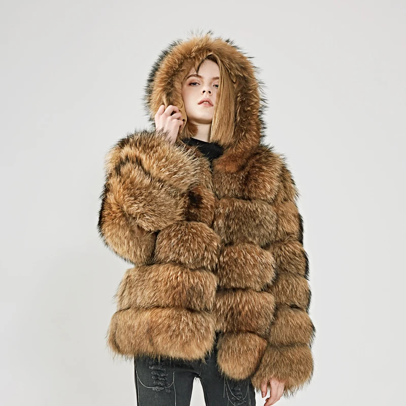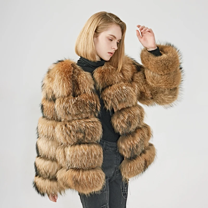 Mao Mao Fur Fashion Wholesale Women Ladies Racoon Fur Jacket/Custom Fashion Natural Fur Coat/Winter Warm Real Raccoon Fur Coat