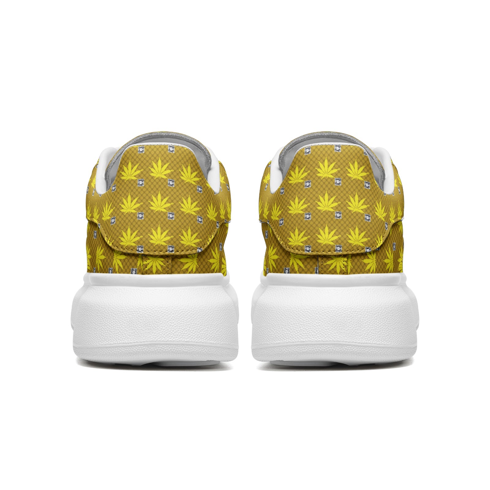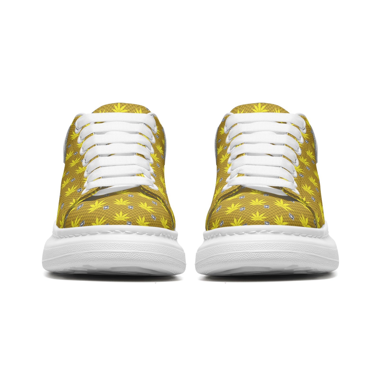 GOLD ICED DIAMOND Unisex Non Slip Lace Up Faux Leather Sneakers