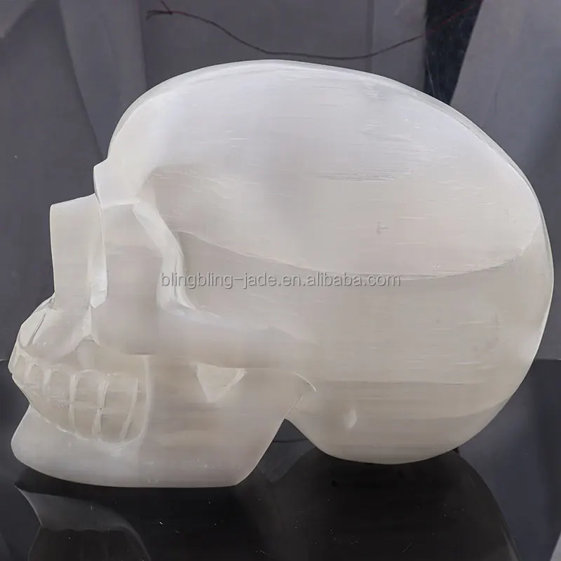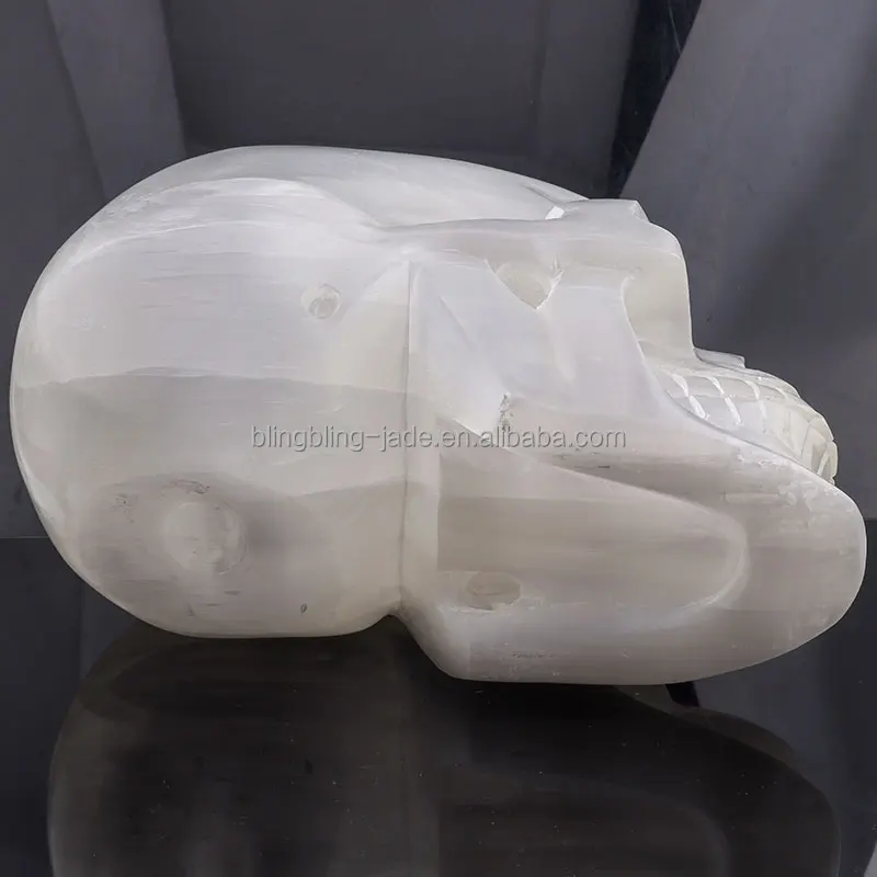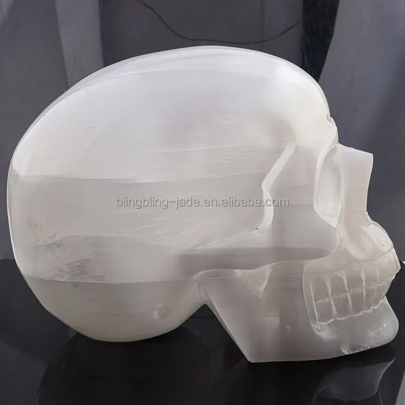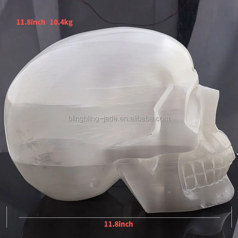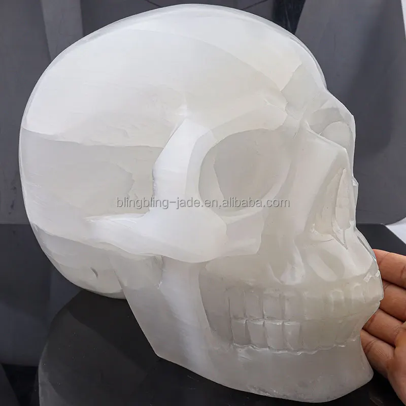 Wholesale 11inch Natural high quality Oversized Hand Carved Large gypsum selenite crystal skulls