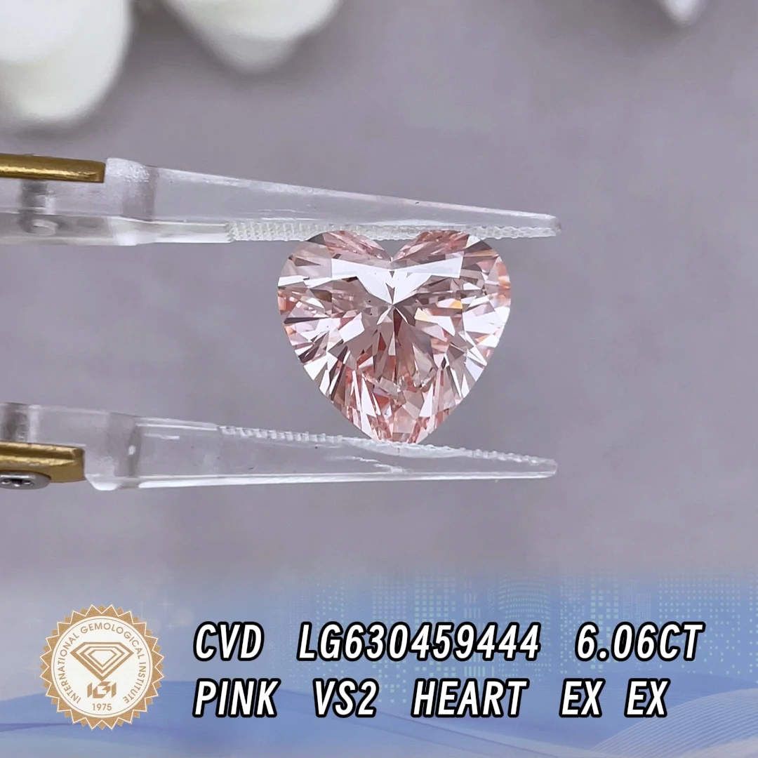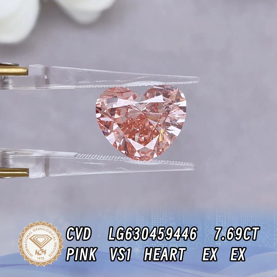 Wholesale fancy pink 7ct heart shape cut lab creat diamond cvd certified lab grown diamond with certificate for jewelry making