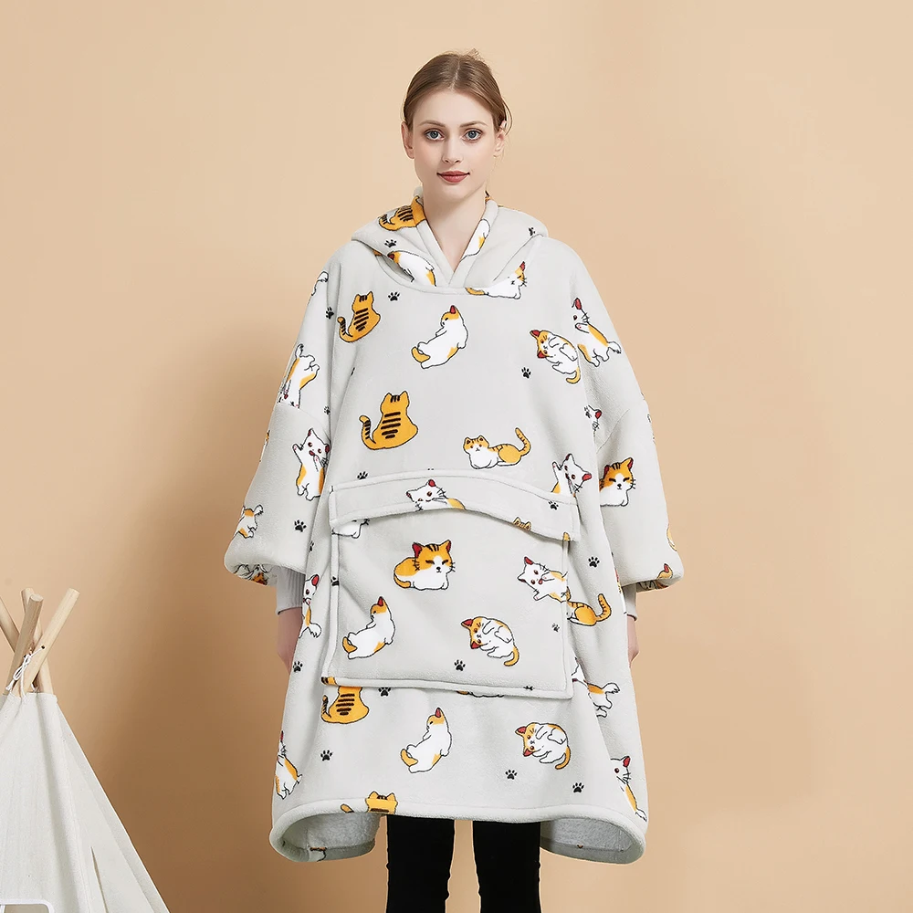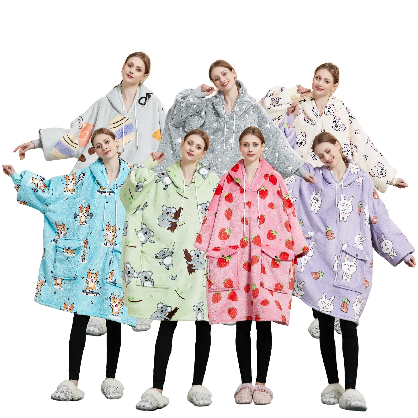 Wholesale Kids Adult Soft Warm Sweatshirt Hooded Blankets Fleece Sherpa Custom Printed Oversized Wearable Hoodie Blanket