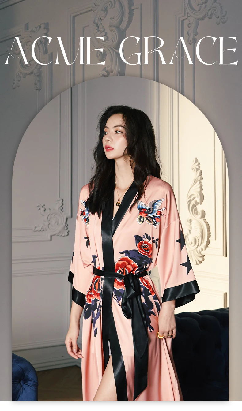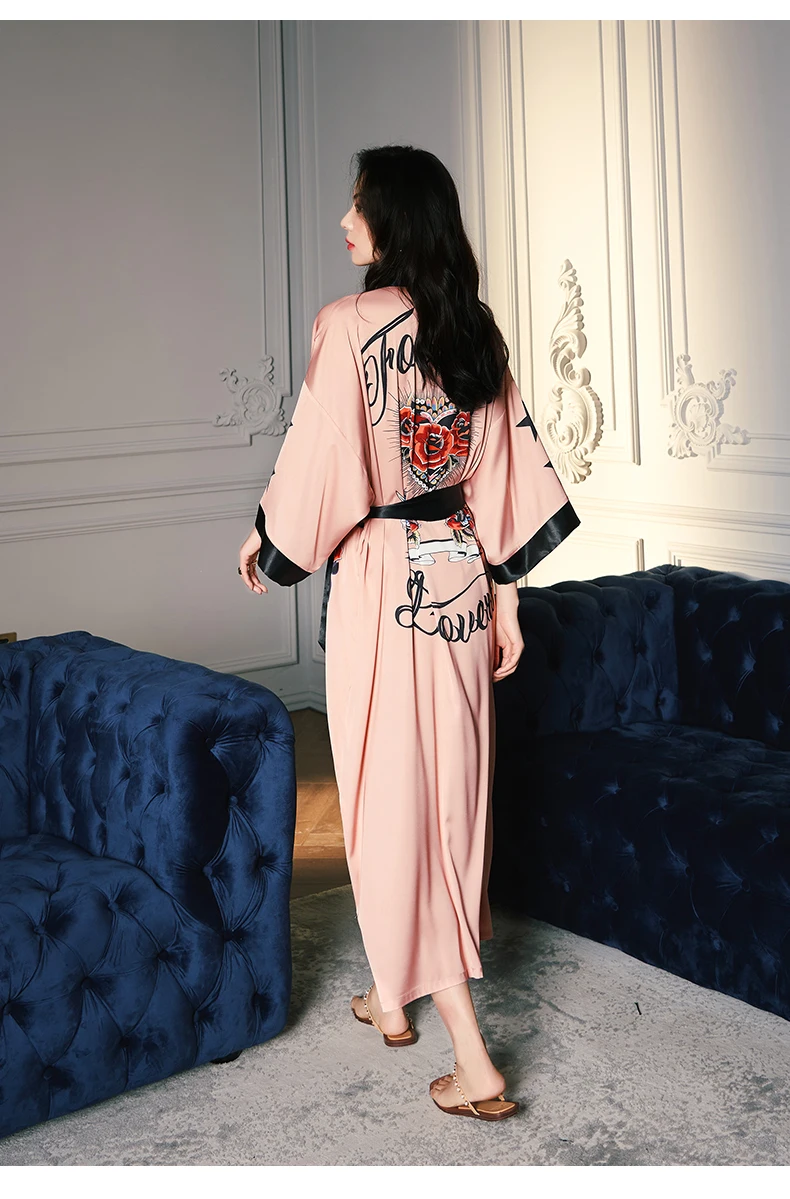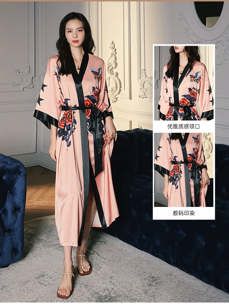 Wholesale long sleeve printed spa silk robe luxury women designer robes