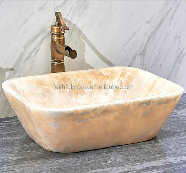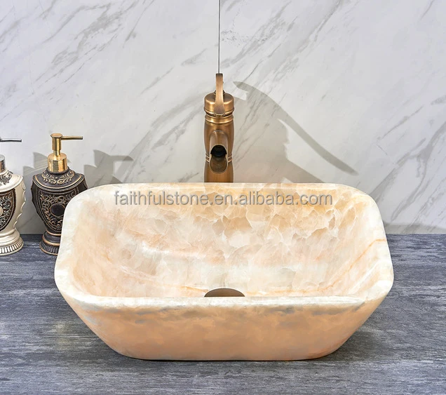 Wholesale luxury bathroom rectangle natural yellow onyx wash vessel sink art basin