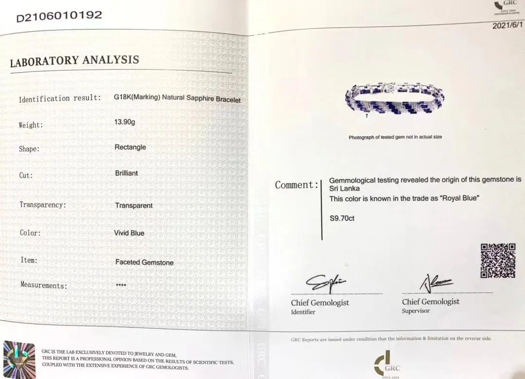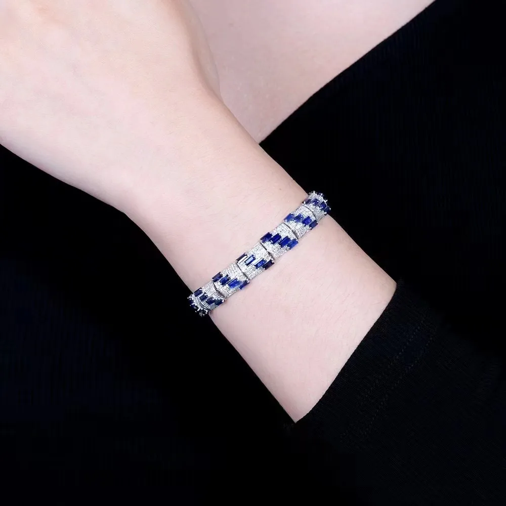 Wholesale Luxury Jewelry 18k gold 9.7ct Sri Lanka Royal Blue Sapphire Bracelet Bangle Natural Gemstone Jewelry with GRC
