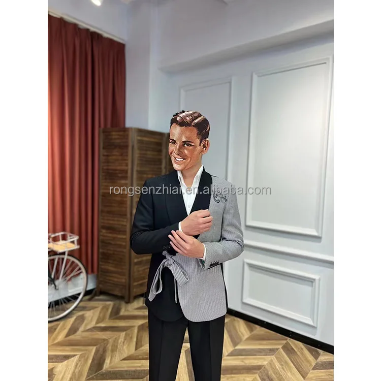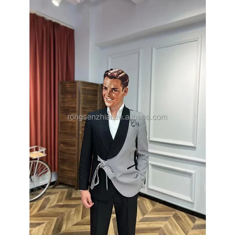 Wholesale Male Fashion Embroidered Suits Splicing Plaid Coats Belted Wedding Blazers