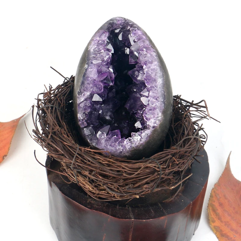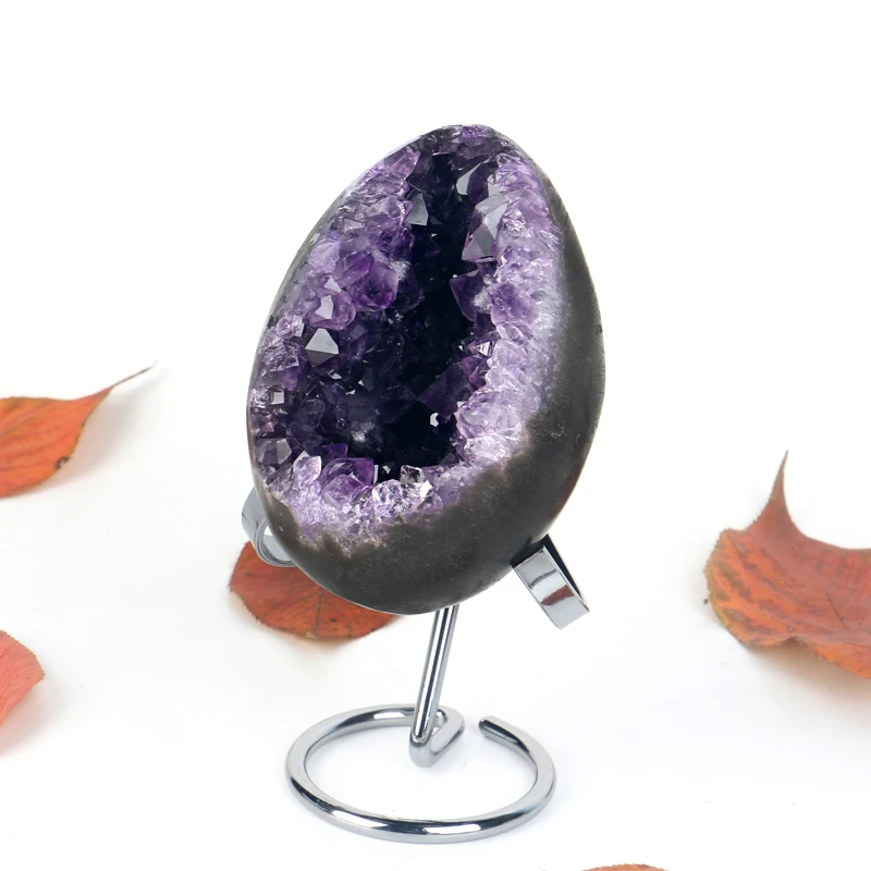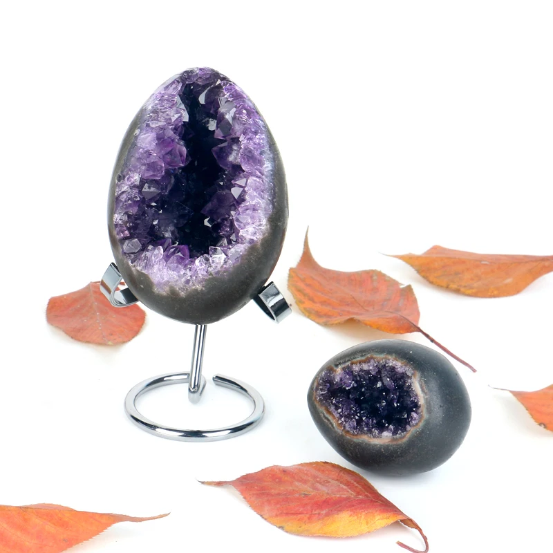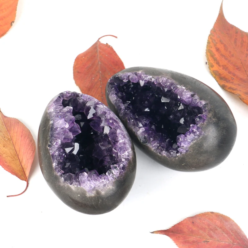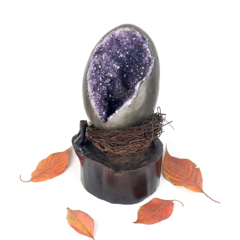 Wholesale Natural Amethyst Geode Dinosaur Egg-shaped Crystal Cluster Gemstone Amethyst Stone For Fengshui Decoration