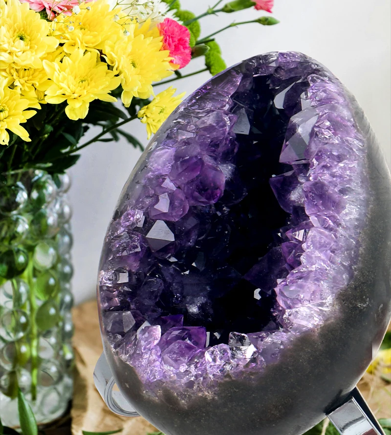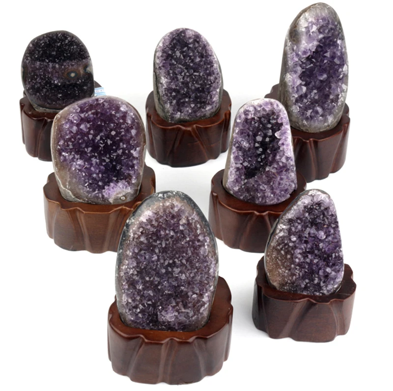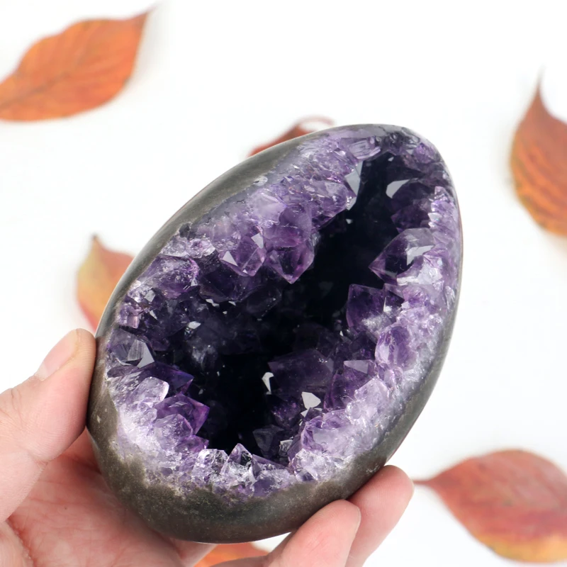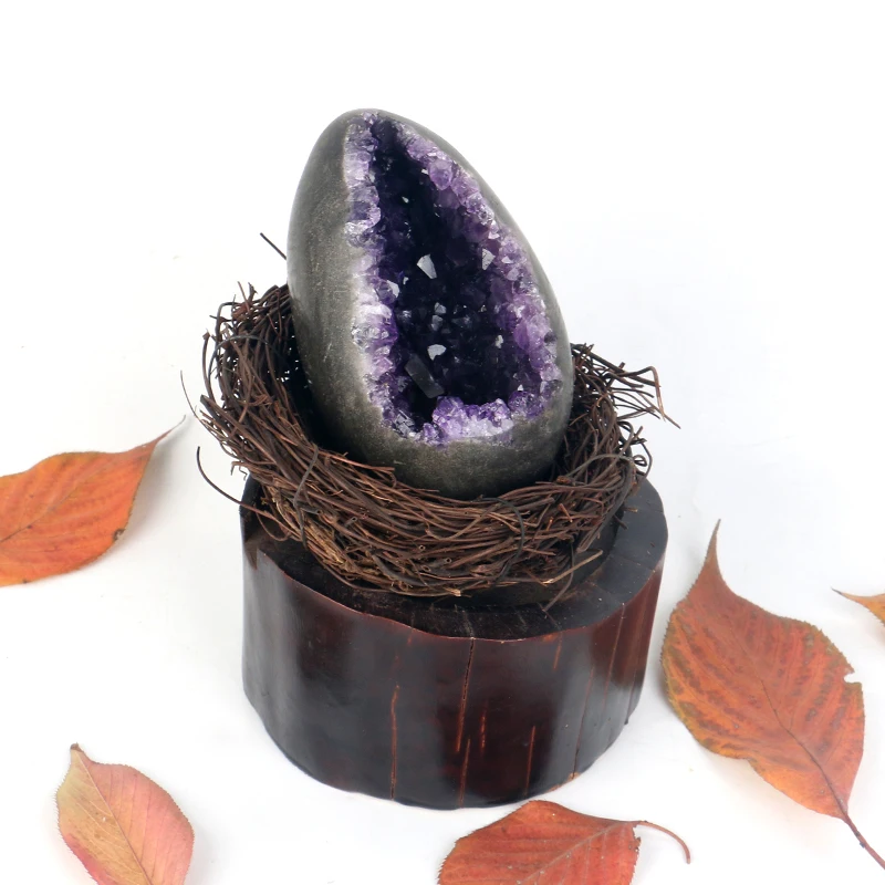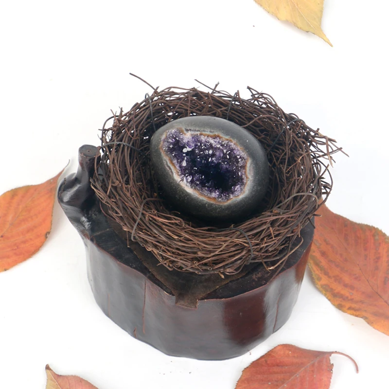 Wholesale Natural Amethyst Geode Dinosaur Egg-shaped Crystal Cluster Gemstone Amethyst Stone For Fengshui Decoration