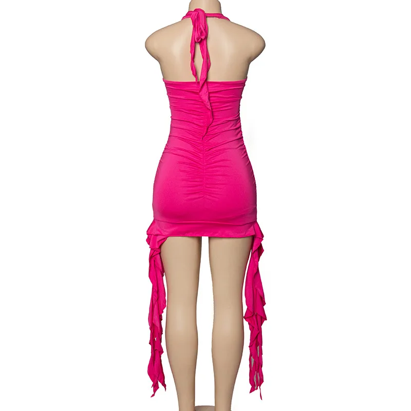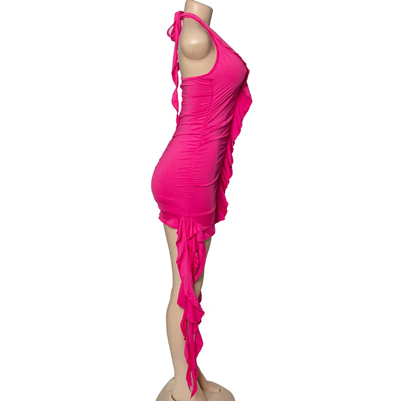 Women Clothing 2024 Summer Beach Dresses Women New Fashion Sexy Solid Sleeveless V Neck Ruffle Irregular Short Dress