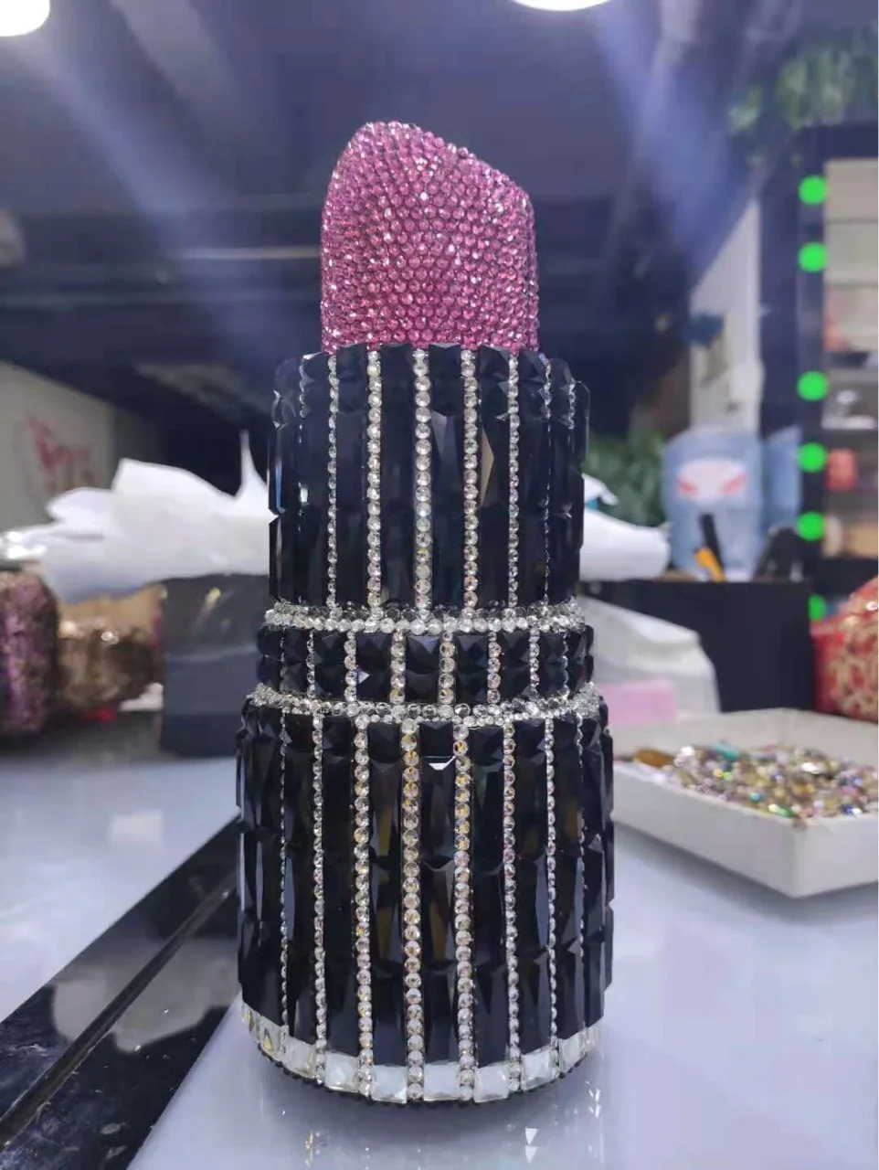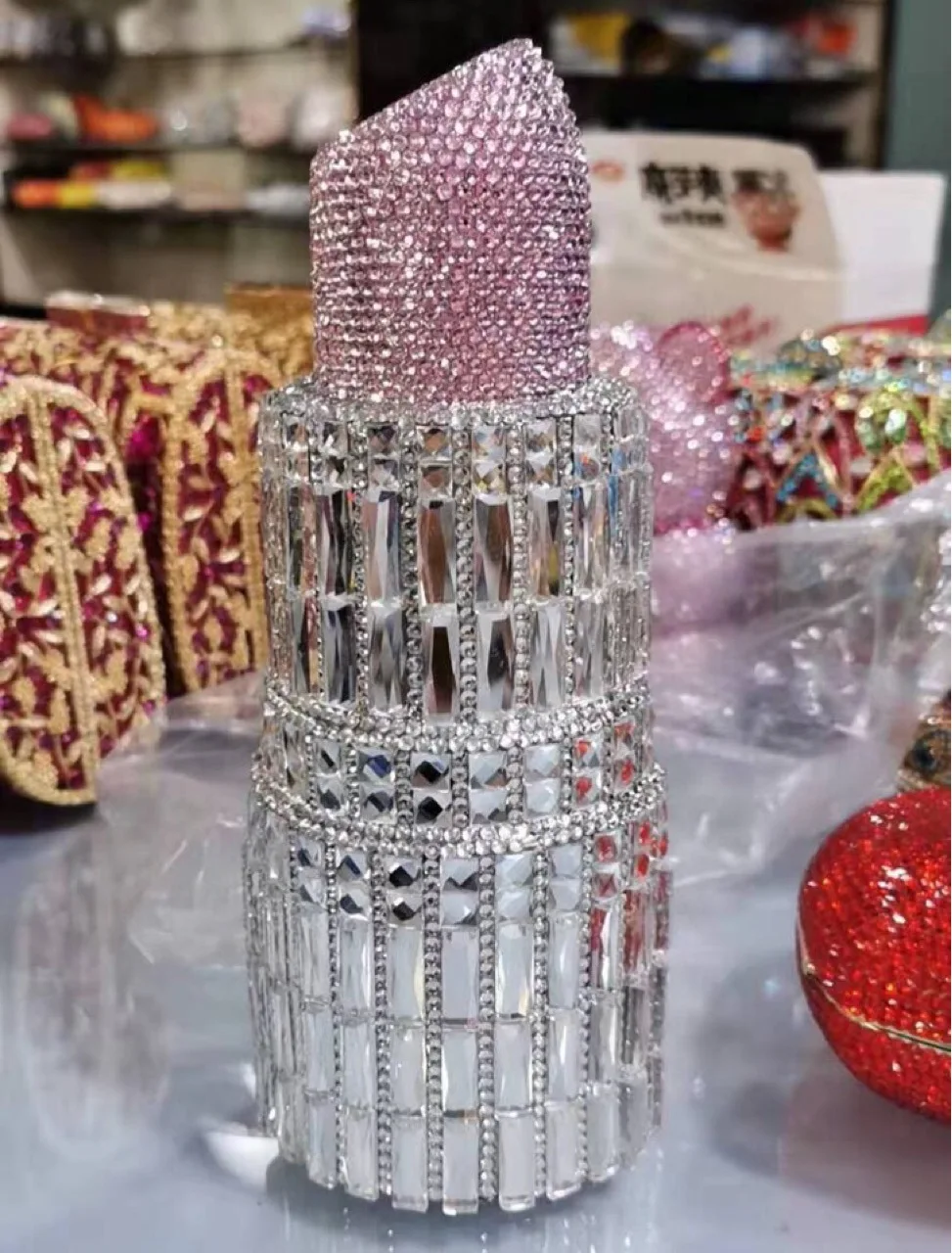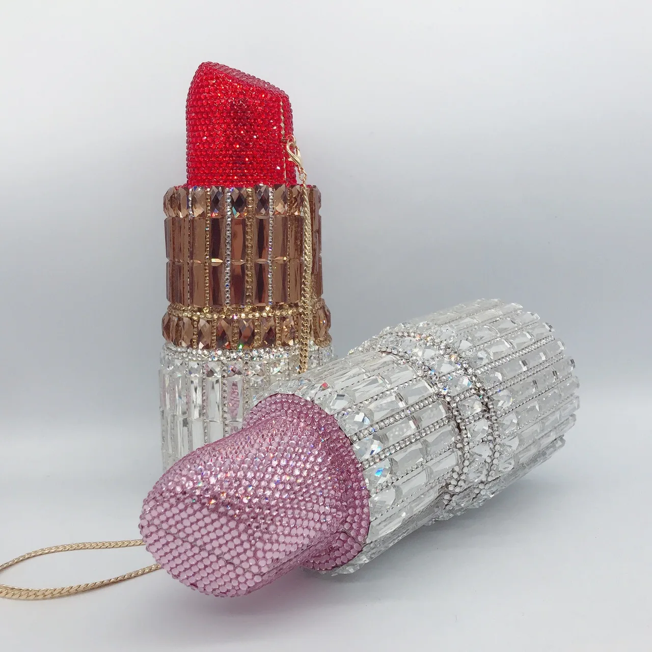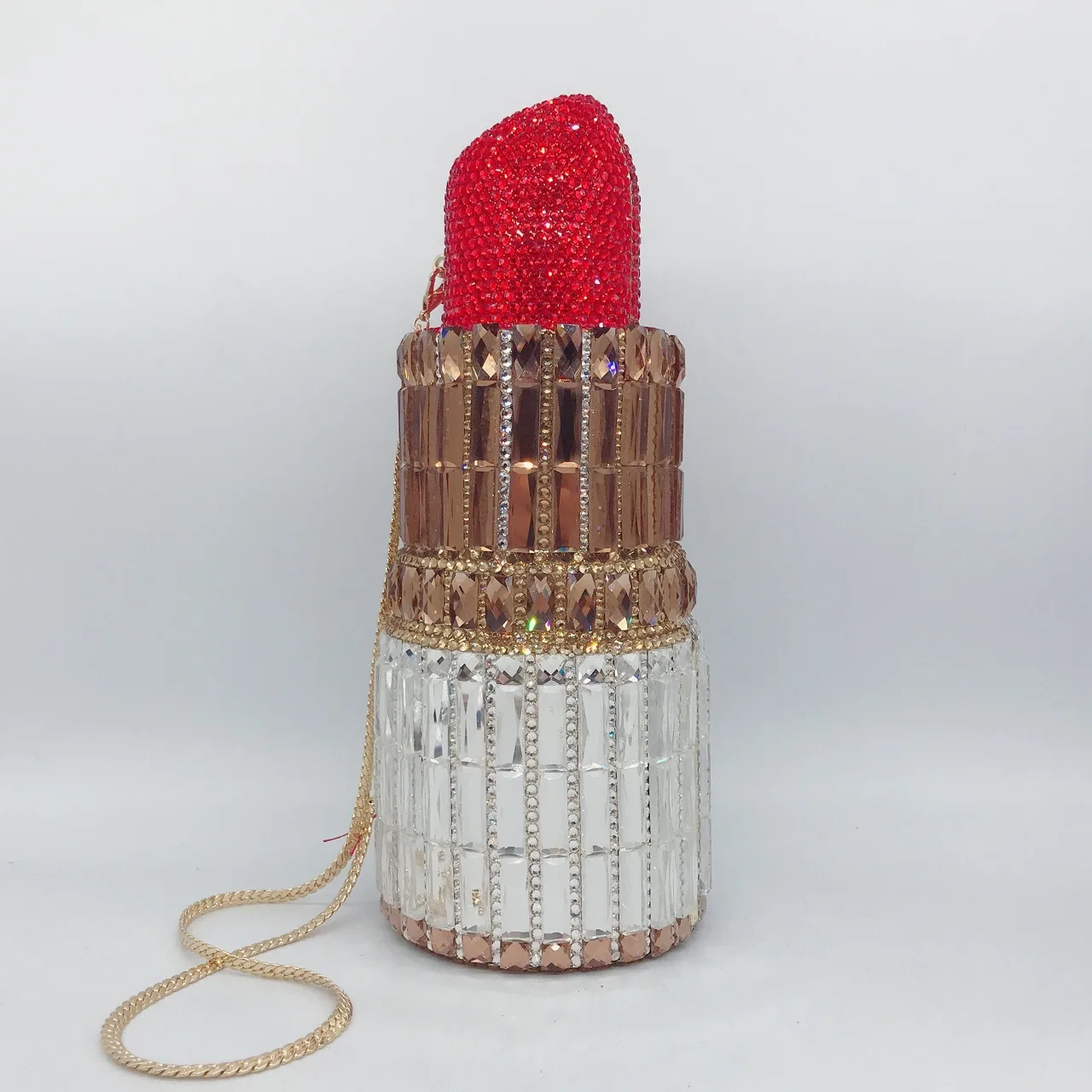 Hot Selling shoulder chain purse mini diamond stone rhinestone female shaped lipstick clutch bag evening bags