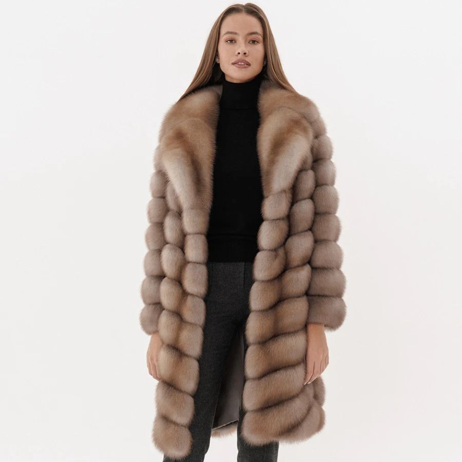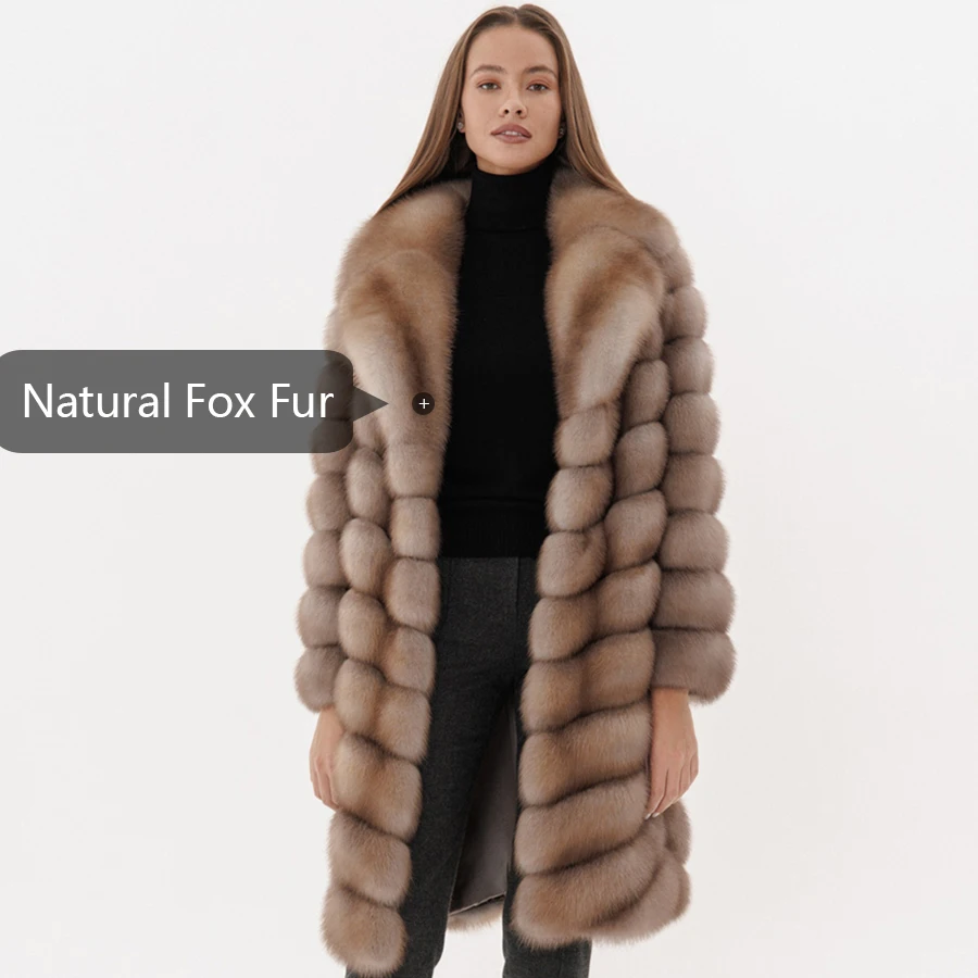 Women Fur Coat Real Fox Fur Coat Winter Clothing Luxury Turndown Collar Coat Warm High Quality