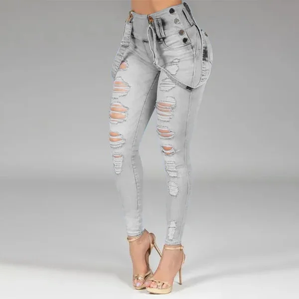Women Jeans High Waisted Straight Skinny Stretchy Pant Streetwear Ladies Hole Washed Bandage Denim Pencil Pants Trousers 2022