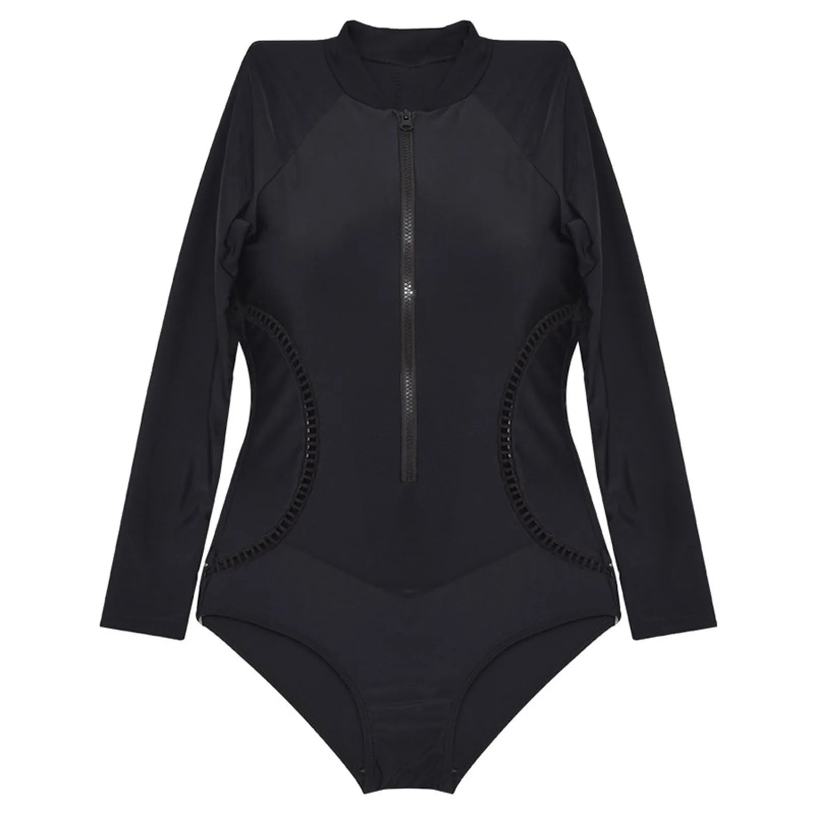 Women Fashion Solid Hollown Piece Swimsuit Sexy Bikini Swimwear Bathing Long Sleeve Zipper Swimsuit